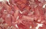 - 100 грамм копченой или полукопченой колбасы.