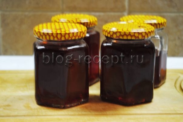 Оставшуюся жидкость ставят на небольшой огонь и доводят до кипения. Держать кастрюльку на плите нужно минут 20. Горячий сироп разливают по чистым сухим емкостям и плотно закрывают пробковыми или металлическими крышками.