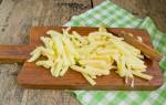 1. Нарежьте картофель средними кубиками и забросьте в кипящий бульон или воду, подсолите. Варите около 15 минут на среднем огне до полуготовности.